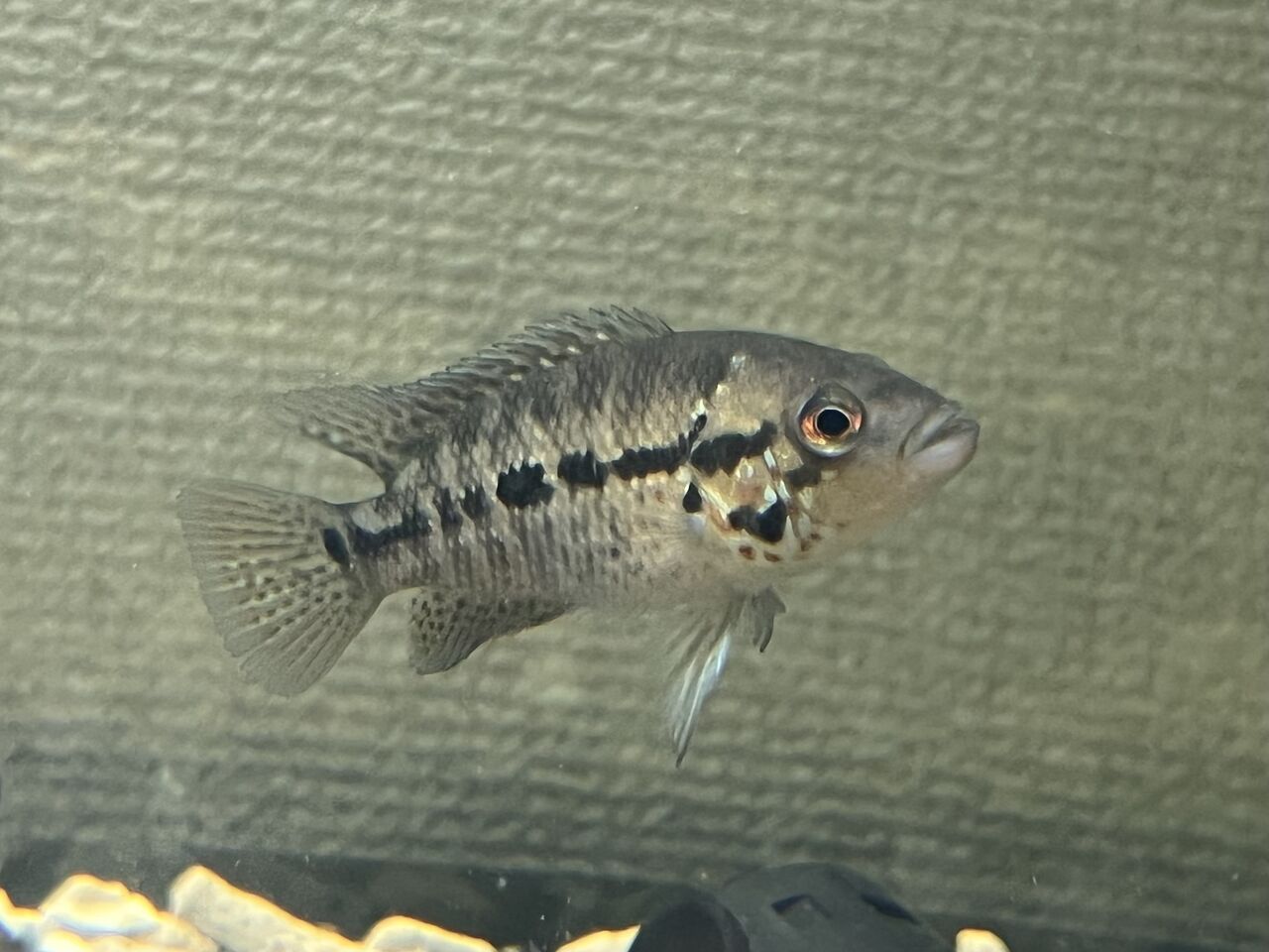 2023年の春にテキサスシクリッド(Herichthys carpinte)のエスコンディド産F1を飼育開始し、4cmから15cmまで持っていけました。それがこちら