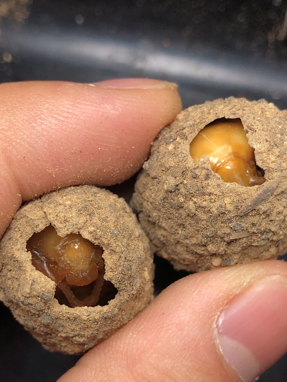 こんな感じです。土を利用して繭を作っている事が分かりますね。